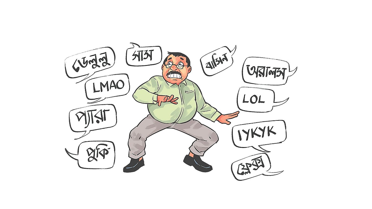 শর্ট ফর্মে কথা বলার শুরুটা ইন্টারনেট আর মিমের কল্যাণে হলেও এখন বাংলা ভাষাতেও বেশ কিছু শব্দ জায়গা করে নিয়েছে। শুরুতেই একটা উদাহরণ দিলাম, প্যারা। একটা সময় প্যারা বলতে লোকে প্যাড়া সন্দেশ বুঝত। মিষ্টির দোকানের সামনে গিয়ে প্যাড়া খাচ্ছি বললে তোমার প্লেটে একটা প্যাড়া সন্দেশও ধরিয়ে দিতে পারে। তবে এখনকার সময়ে প্যারা মানে হলো ঝামেলা। আবার ধরো আগুন, কঠিন, সেই–ই কিংবা জটিল, জোশ। ভিন্ন ভিন্ন অর্থ হলেও ব্যবহৃত হয় অনেক ভালো বা দারুণ কিছু বোঝাতে। আর যদি উল্টোটা বোঝাতে হয়, তাহলে তো ক্রিঞ্জ আছেই। আর ‘ঝোপ বুঝে কোপ মারা’ তো ব্যবহৃত হয়ে আসছে অনেক আগে থেকেই। কিন্তু কোপের অর্থ বদলে হয়ে গেছে দারুণ কিছু করাতে। পরীক্ষার প্রস্তুতি ভালো হলে বলতে শুনি—কোপ হবে কোপ। আর সেই পরীক্ষার রেজাল্ট যদি ভালো হয়, আমরা তো বলি—পুরা কোপায় দিছে রে মামা!